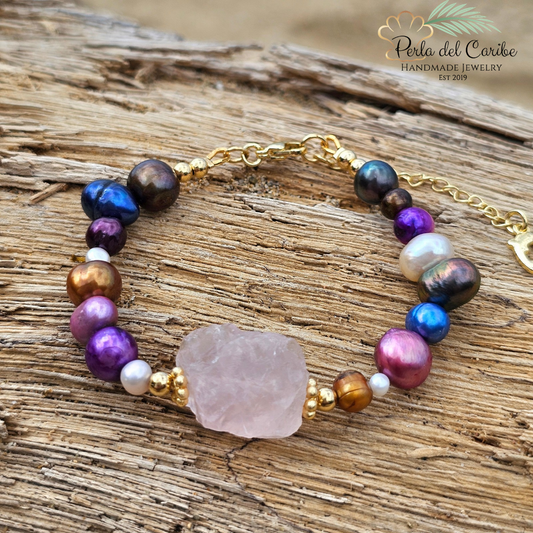 Rose Quartz Multi-Colored Pearls Bracelet